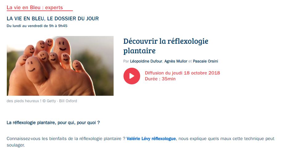 Revue de Presse https://www.francebleu.fr/emissions/la-vie-en-bleu-le-dossier-du-jour/herault/decouvrir-la-reflexologie-plantaire Partager : Partager sur X(ouvre dans une nouvelle fenêtre) X Partager sur Facebook(ouvre dans une nouvelle fenêtre) Facebook J’aime chargement…